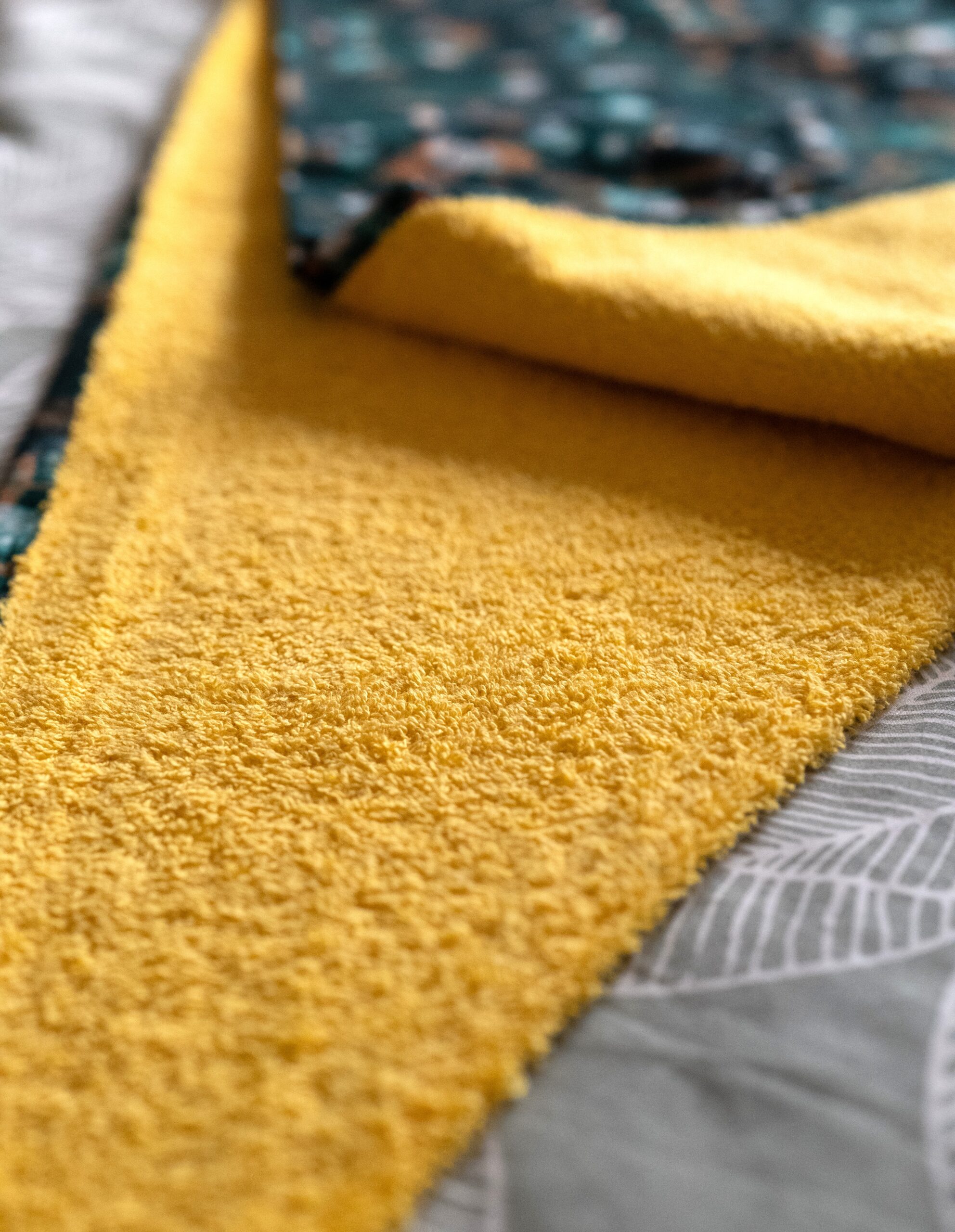 Un attache-tête femme 100% coton, pratique, absorbant et esthétique.