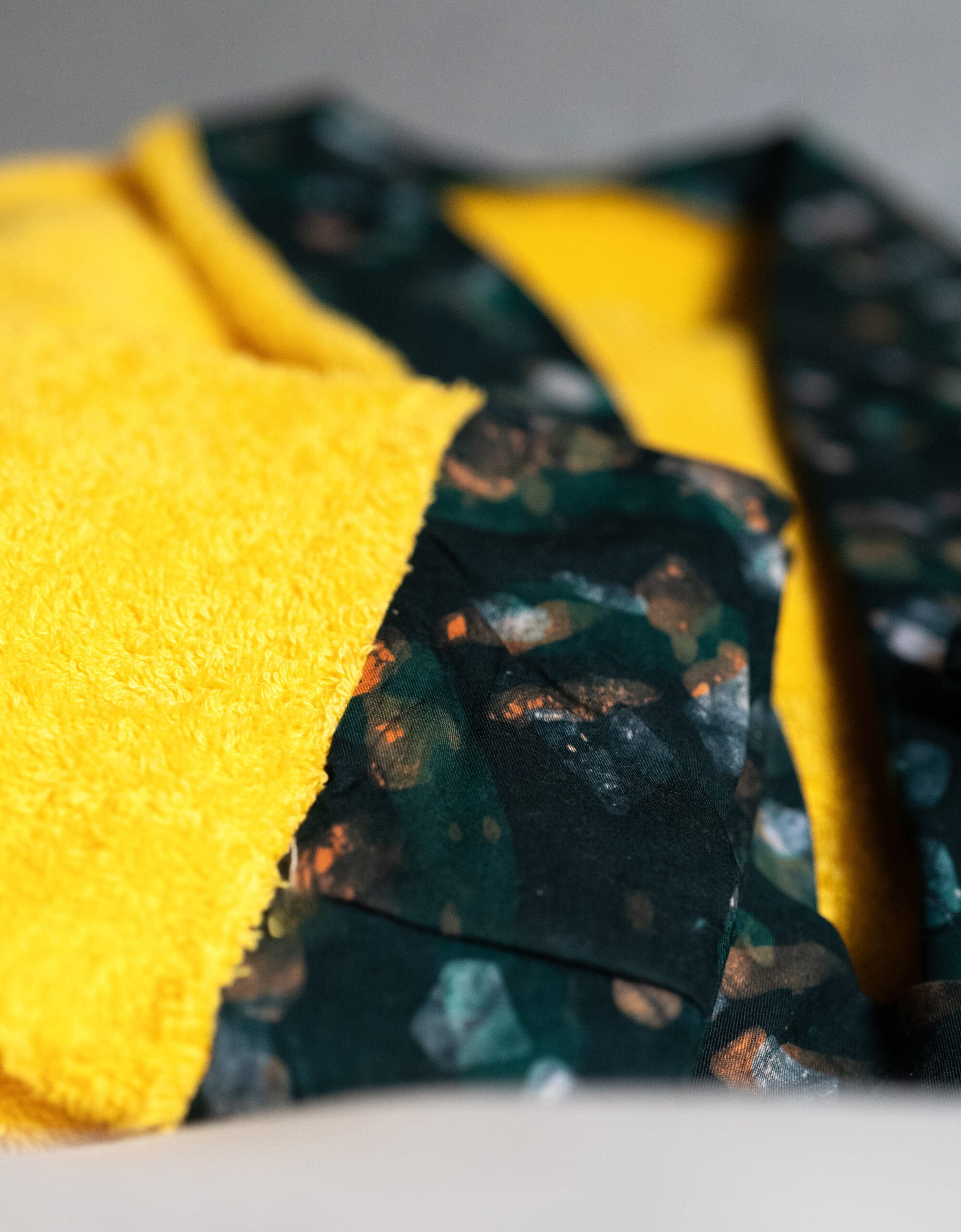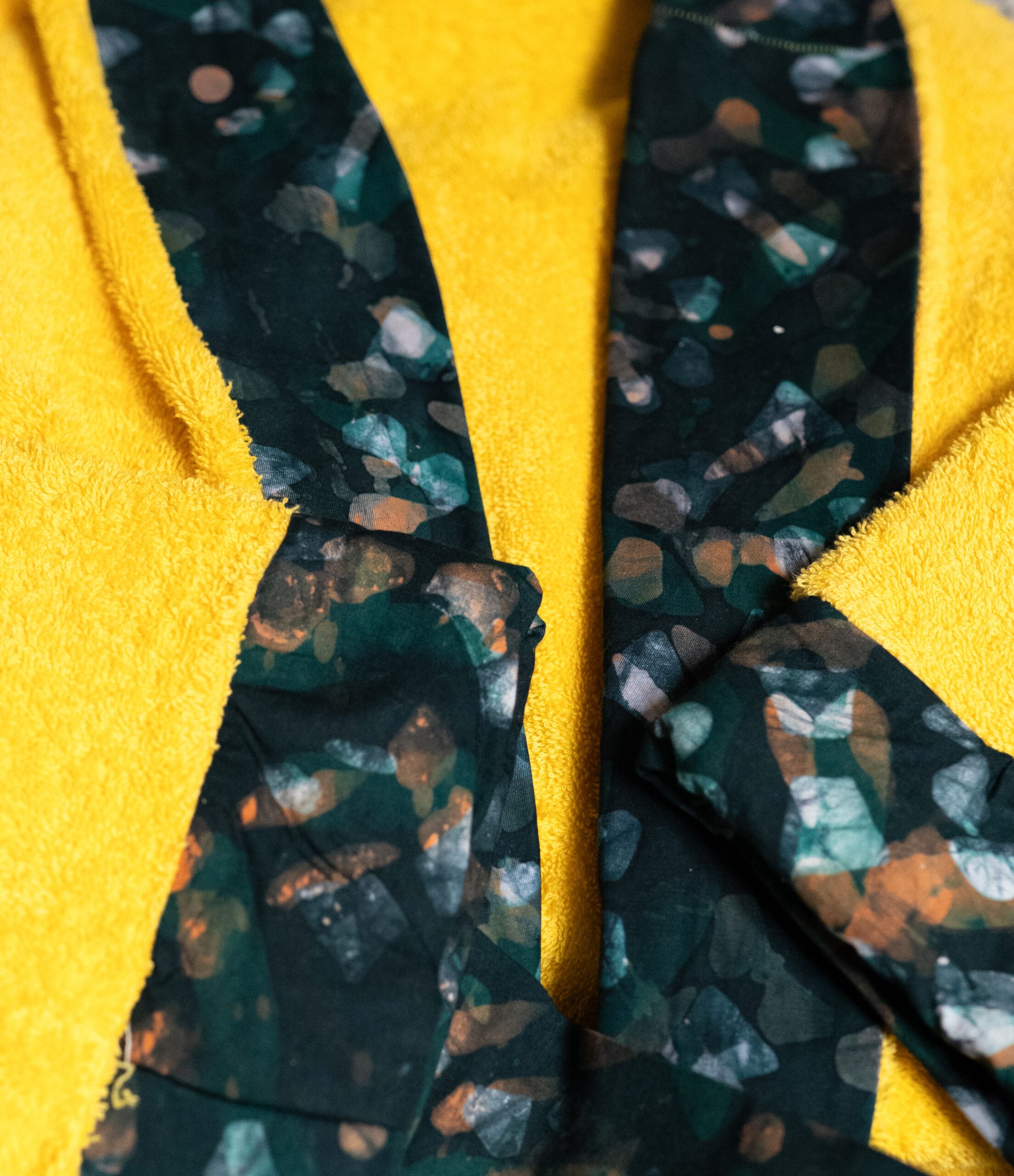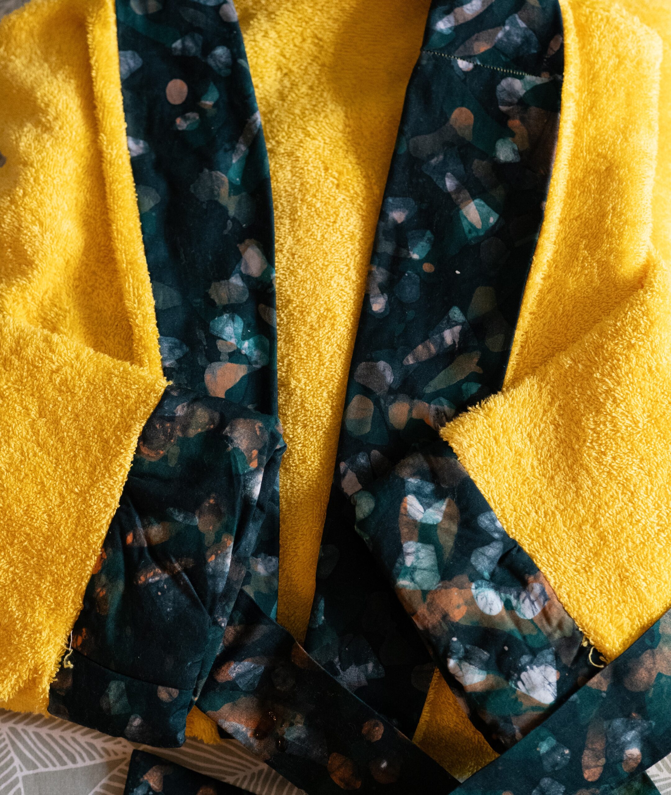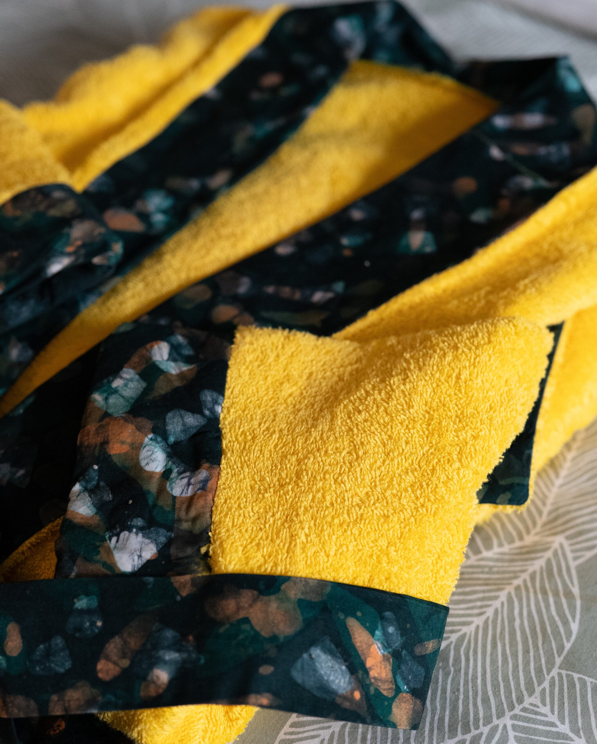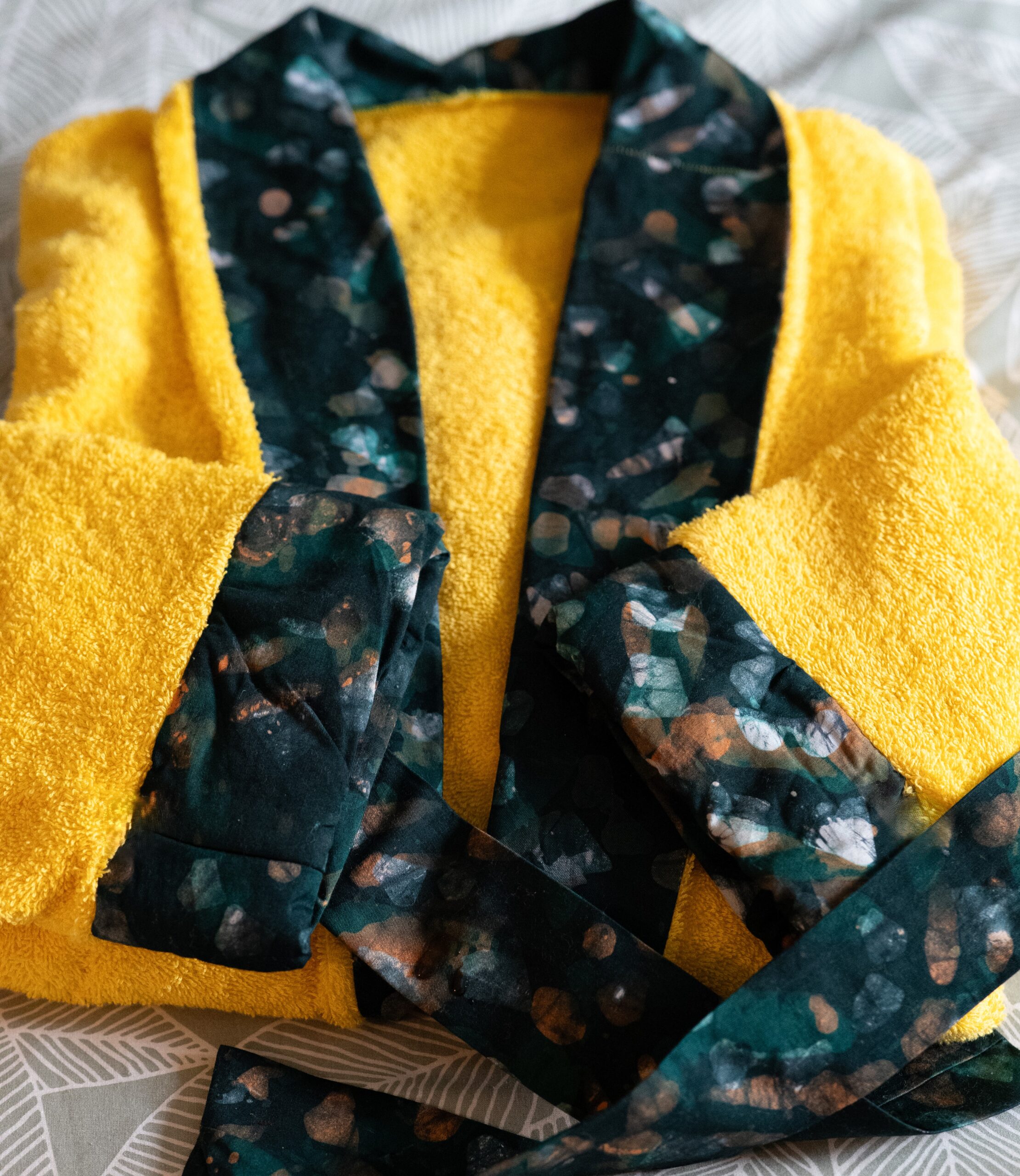 Un peignoir femme 100% coton, croisé sur le devant avec un col châle doux et élégant.