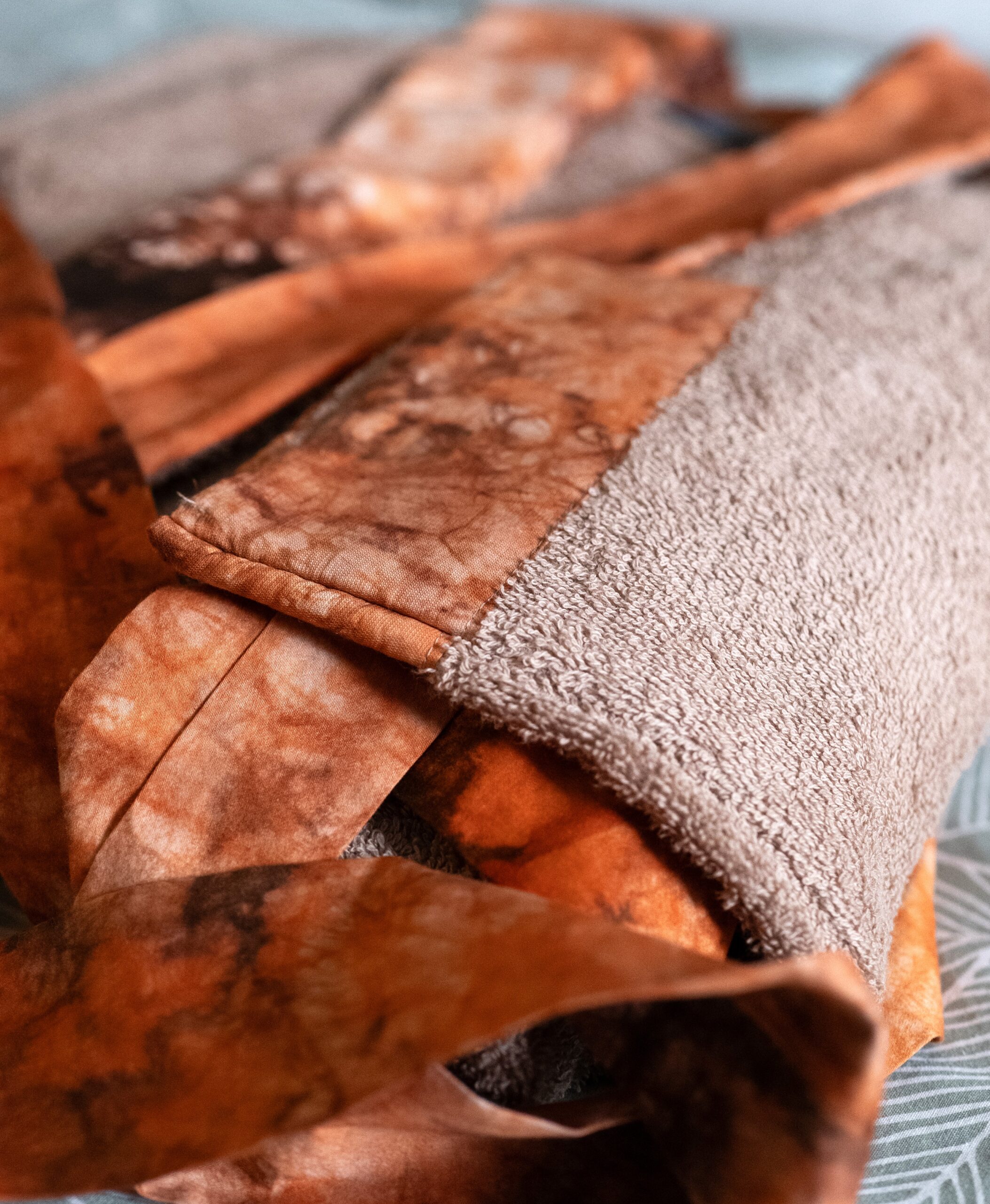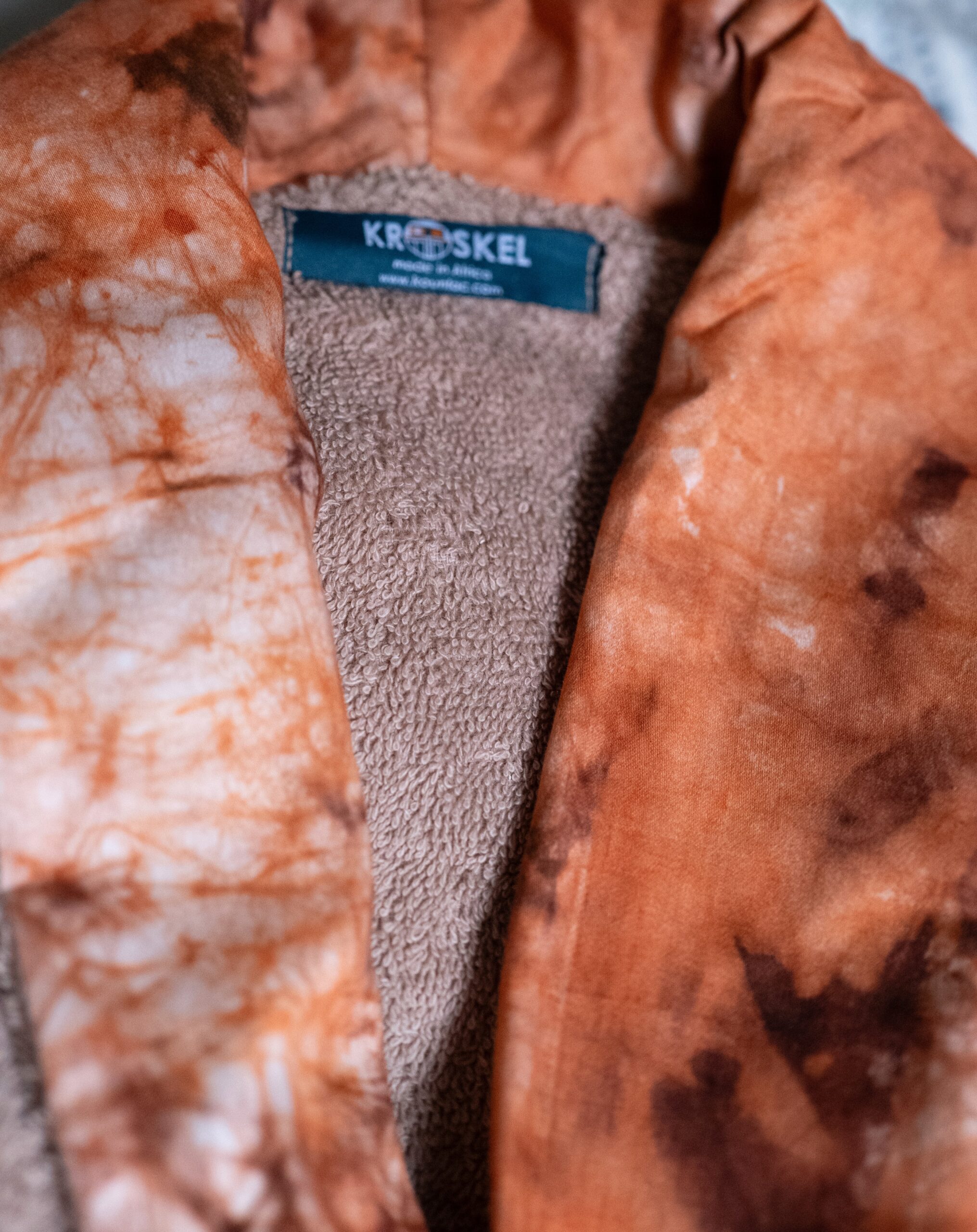 Rehaussé de tissus artisanaux teints à la main, il incarne la force et la chaleur de la maison Kroskel.